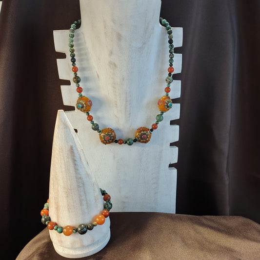 Bracciale in avventurina arancione con centrale in diaspro irregolare