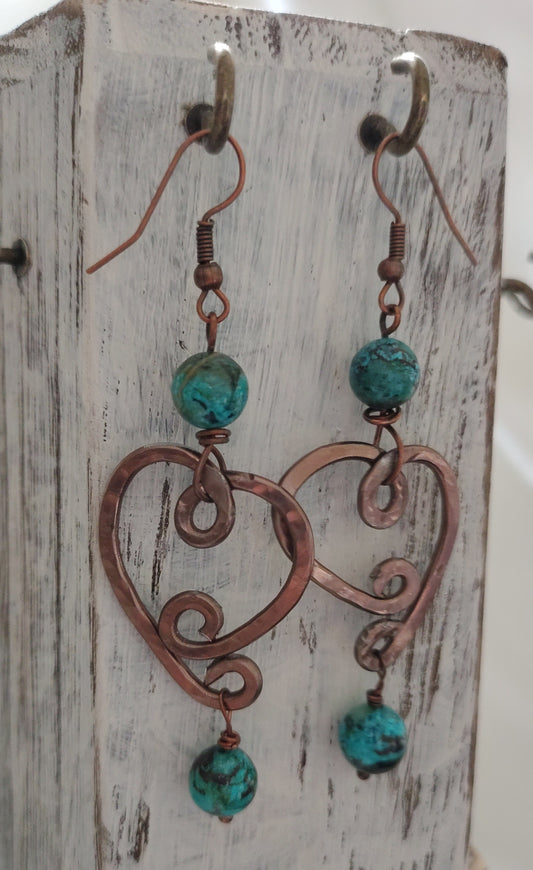 Orecchini “Cuori Scassati” in Crisocolla – La calma dopo la tempesta - rif.CS011