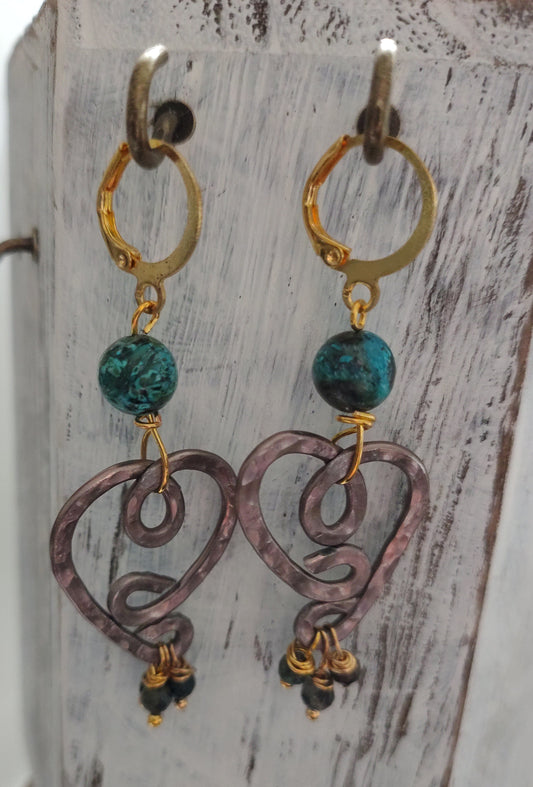 Orecchini in Crisocolla – Linea Cuori Scassati - Saggezza e forza silenziosa - rif.CS007