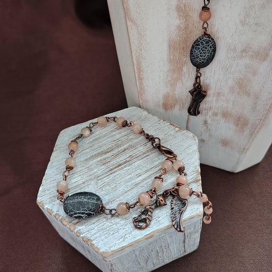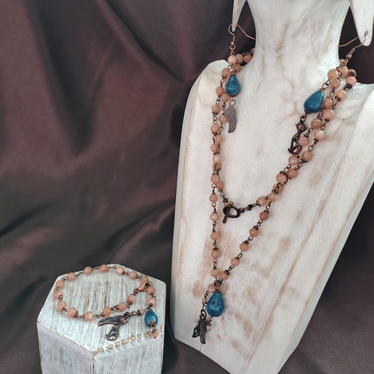 Parure "Abbraccio di Luce" – Collana, Bracciale e Orecchini in Pietra di Luna e Rame- Rif. 2025/39 1/2/3