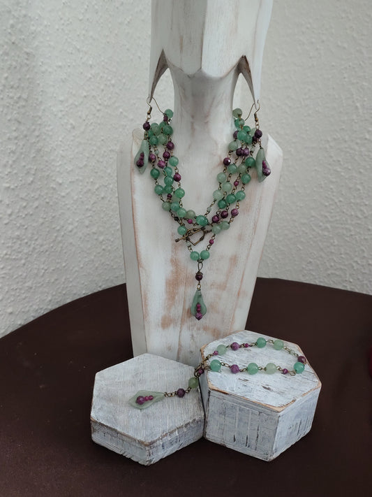 Parure in Avventurina Verde e Rubino – Gioielli Naturali per Energia, Benessere e Armonia"- Rif.2025/35 1/2/3