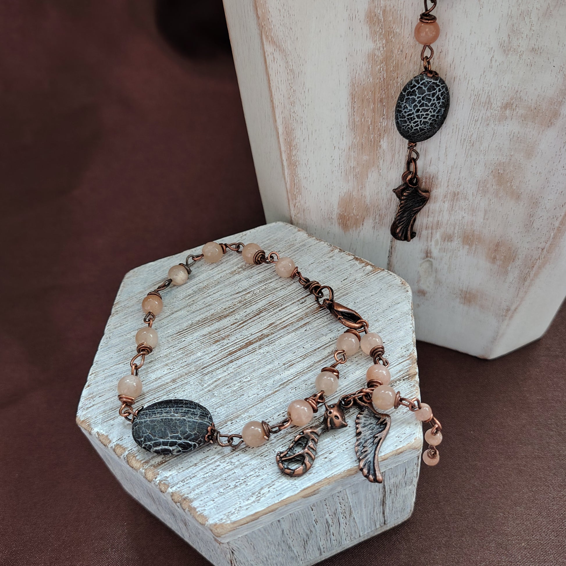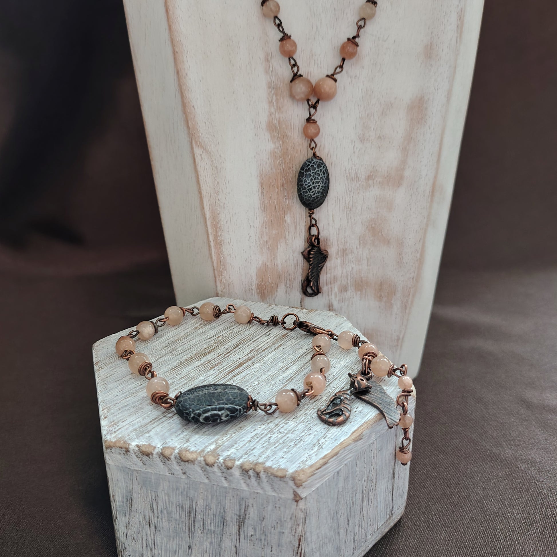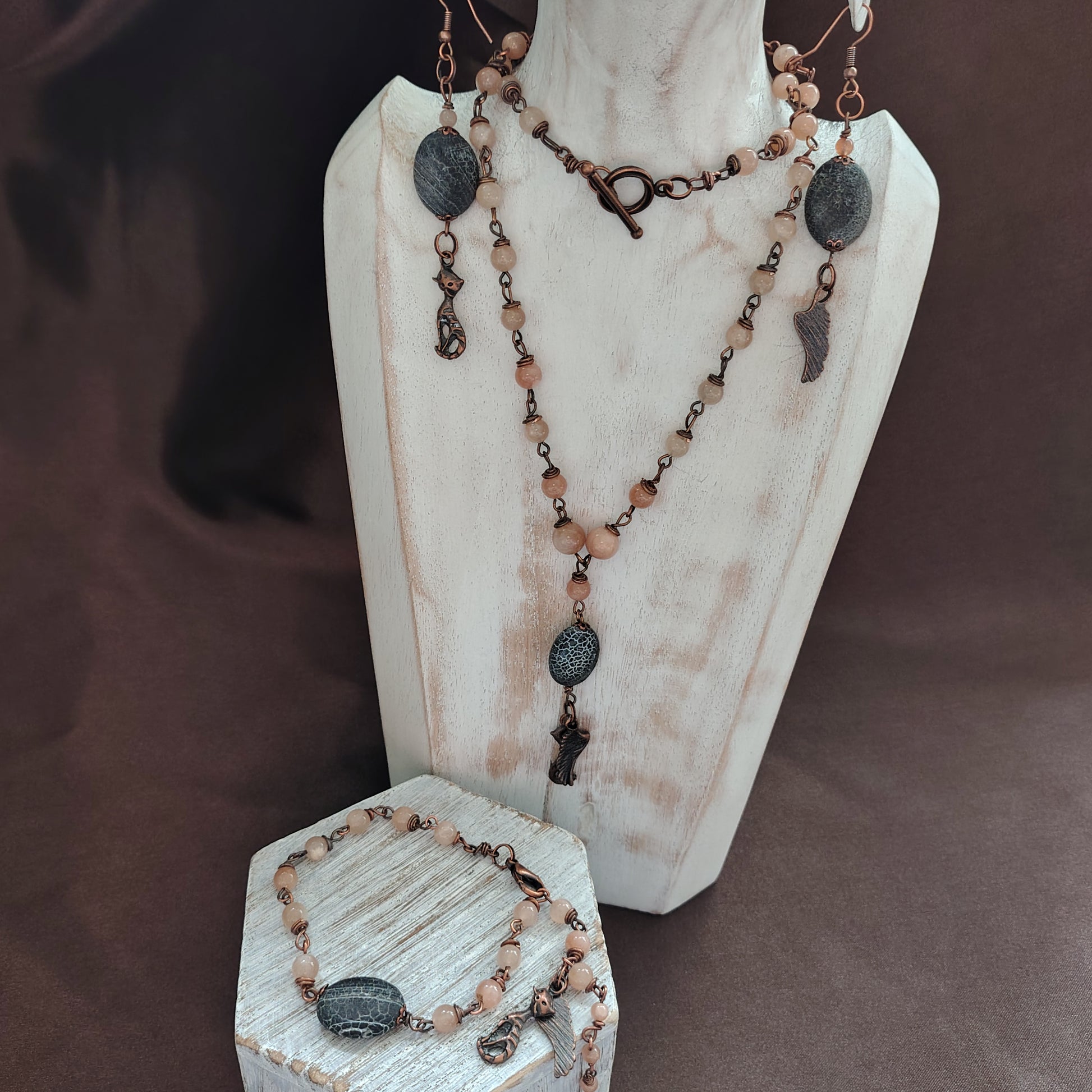 Parure "Abbraccio Eterno" – Collana, Bracciale e Orecchini in Pietra di Luna e Agata Smerigliata Rif. 25/41 1/2/3
